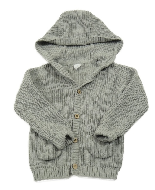 Sivý melírovaný rebrovaný prepínaci sveter s nápismi a kapucňou Topomini