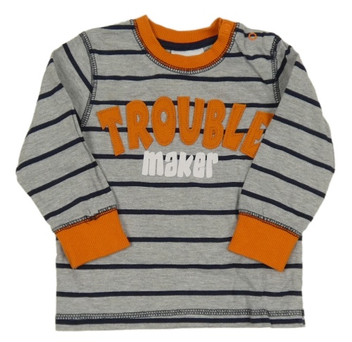Sivo-tmavomodrá pruhovaná mikina s nápisom