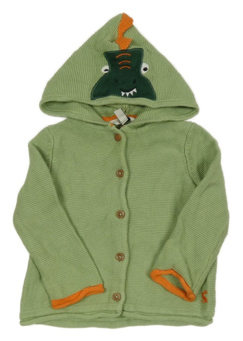 Zeleno-oranžový prepínaci sveter s dinosaurom a kapucňou