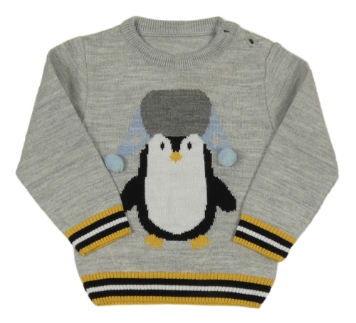 Sivý ľahký sveter s lemem a tučňákem