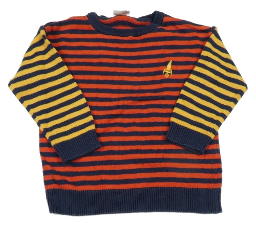 Červeno-tmavomodro-žltý pruhovaný ľahký sveter F&F