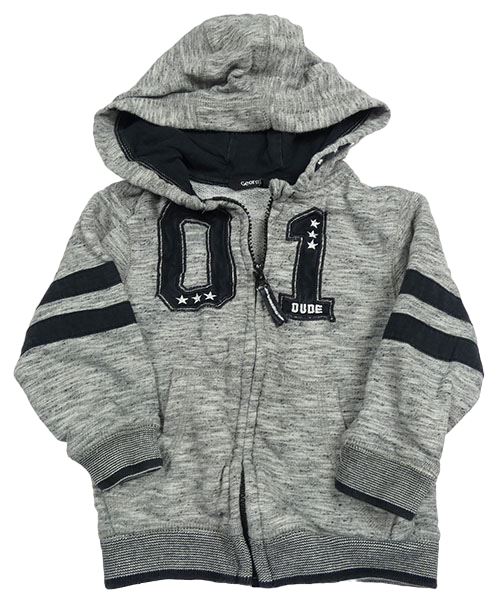 Sivo-čierna melírovaná prepínaci mikina s číslom a pruhmi a kapucňou George