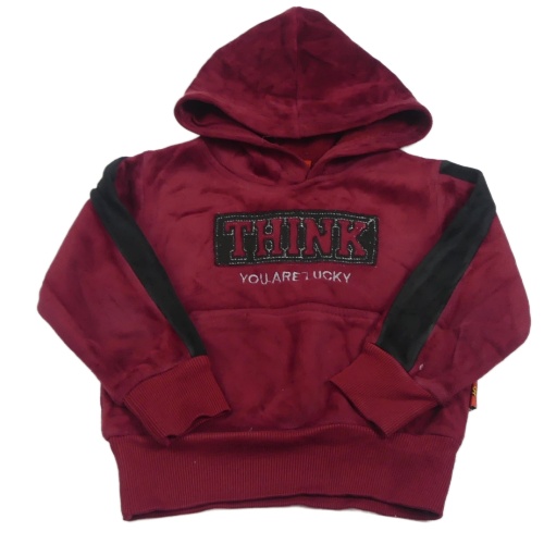 Vínovo-čierna zamatová mikina s nápisom a kapucňou