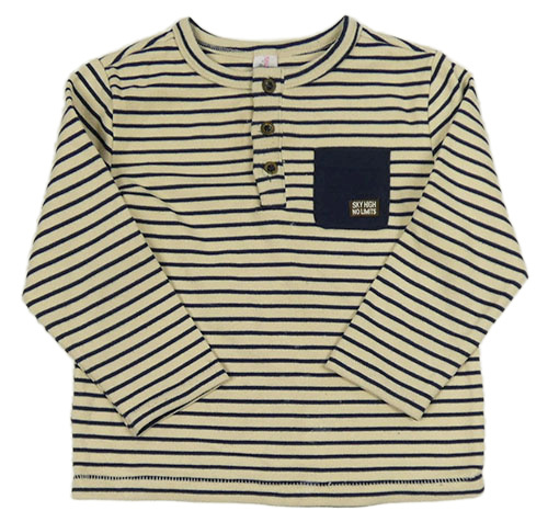 Světlebéžovo-tmavomodré pruhované mikinotriko s vreckom s nášivkou Topomini