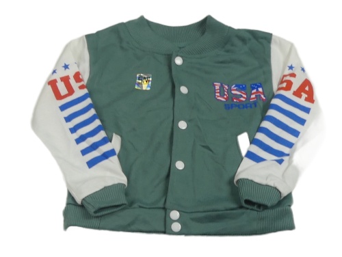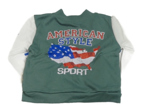 Kaki-biela prepínaci mikina s nápisom a pruhy na rukávech