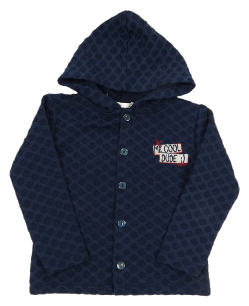 Tmavomodrá vzorovaná prepínaci mikina s nápismi a kapucňou BREEZE