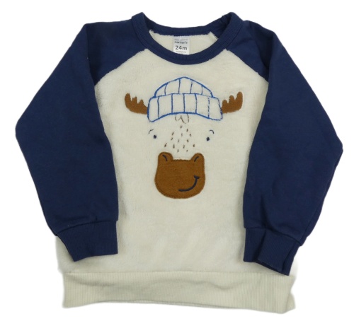 Bielo-tmavomodrá plyšová mikina so sobom Carter's