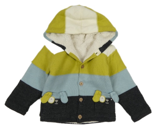 Bielo-zeleno-svetlomodrý prepínaci zateplený sveter s kapucňou Nutmeg