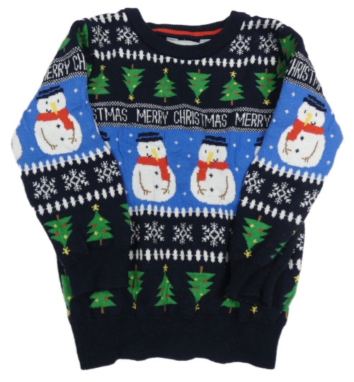 Tmavomodro-modrý sveter so stromky a sněhuláky Primark