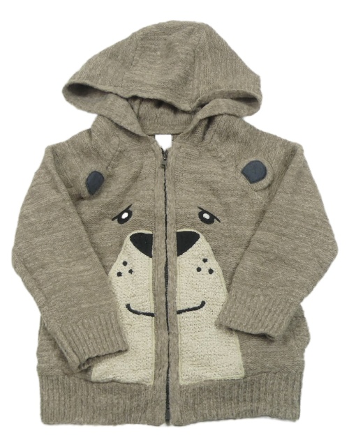 Sivý prepínaci sveter s medvěďom a kapucňou Tu