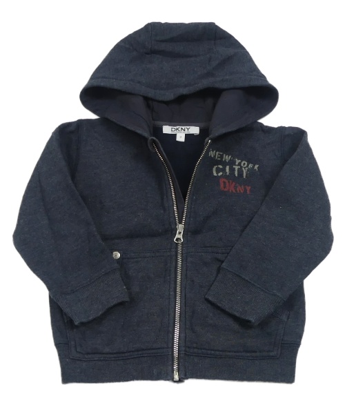 Tmavomodrá melírovaná prepínaci mikina s nápisom a kapucňou DKNY