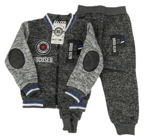 Nové - Černo-šedá melírovaná pletená souprava s nášivkami