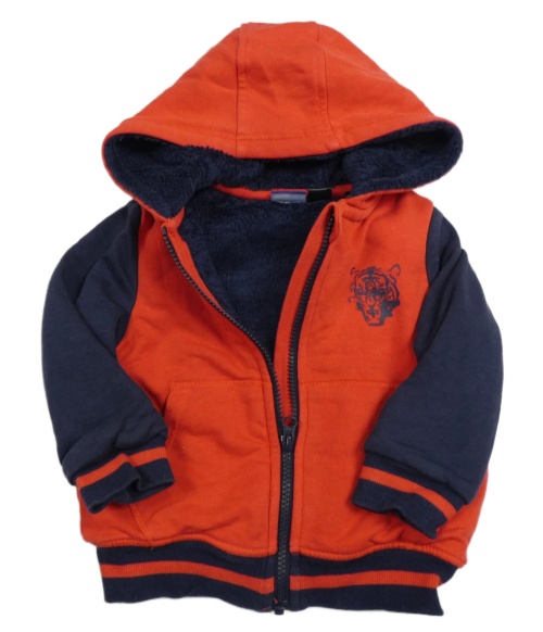 Červeno-tmavomodrá prepínaci zateplená mikina s tigrom a kapucňou Lupilu