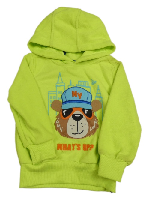 Neónově zelená fleecová mikina s medvedíkom a kapucňou Kiki&Koko