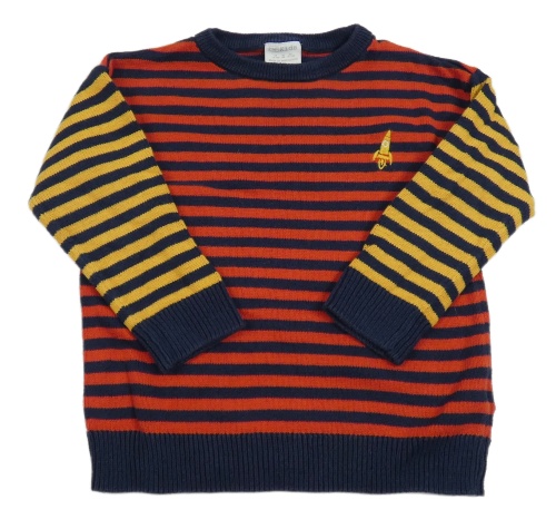 Červeno-tmavomodro-žltý pruhovaný sveter F&F