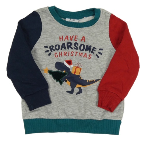 Sivo-červeno-tmavomodrá vianočná mikina s dinosaurom L&D