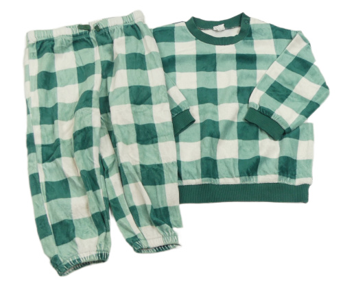 2set - Zeleno-biela kockovaná zamatová mikina + tepláky H&M