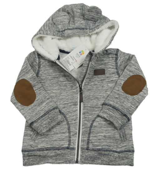 Nové - Sivá melírovaná prepínaci mikina s nášivkou a kapucňou Topomini