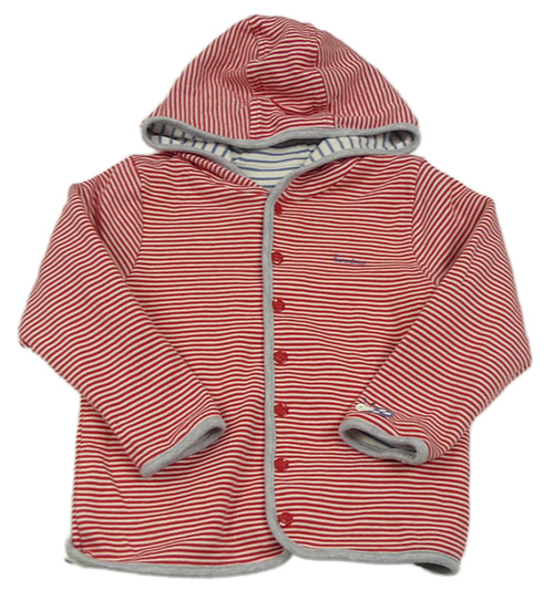Červeno-biela pruhovaná prepínaci podšitá obojstranná mikina s kapucňou BORNINO