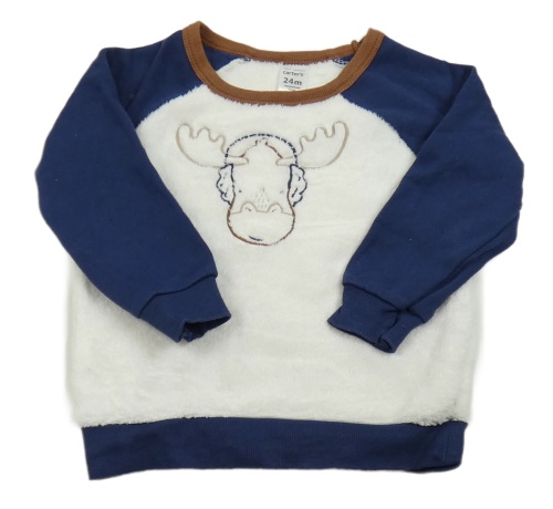 Bielo-tmavomodrá chlpatá mikina s losom Carter´s