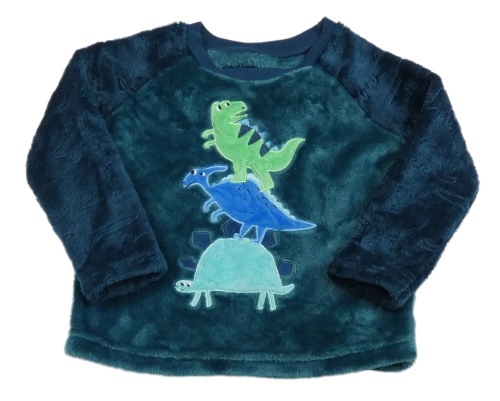 Tmavozeleno-petrolejová chlpatá mikina s dinosaurami Nutmeg