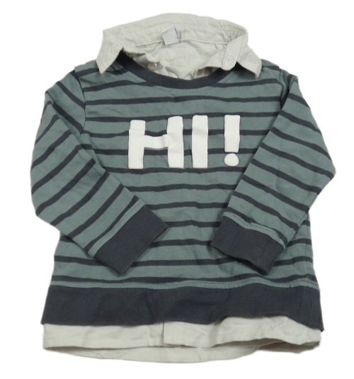 Zelenošedo-antracitová pruhovaná mikina s nápisom a košilí Topomini