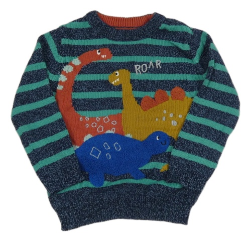Tmavomodro-zelený pruhovaný sveter s dinosaurami Nutmeg