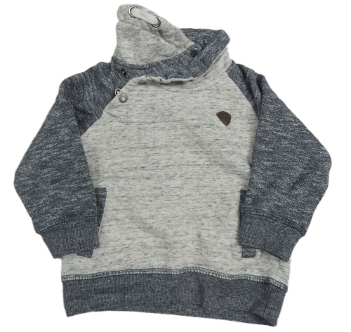 Svetlošedá -tmavomodrá melírovaná mikina s nášivkou a stojáčke Topolino
