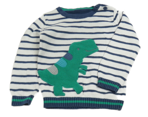 Bielo-tmavomodrý pruhovaný sveter s dinosaurom Nutmeg