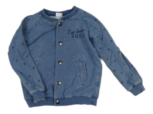Modrá baseballová mikina riflového vzhledu s nápismi a palmami F&F