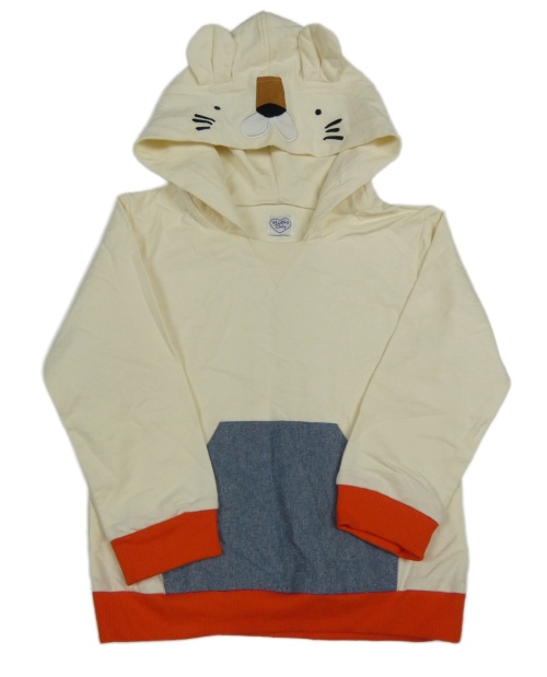 Smetanovo-modro-červená mikina s kapucňou s ňufáčikom