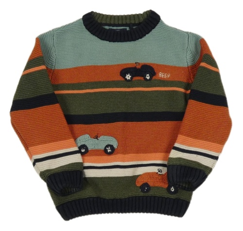 Modro-oranžovo-khaki pruhovaný sveter s autami Next