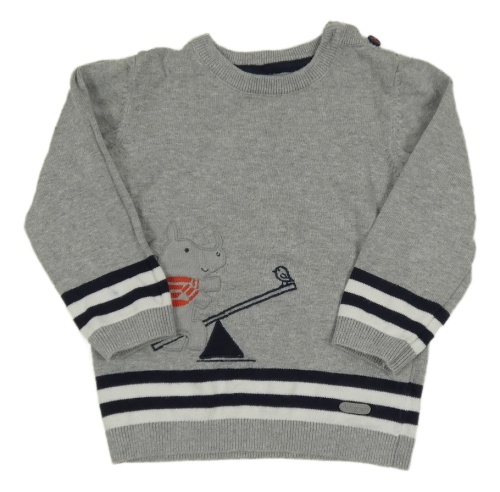 Sivý melírovaný sveter s nosorožcem a vtáčikom M&S