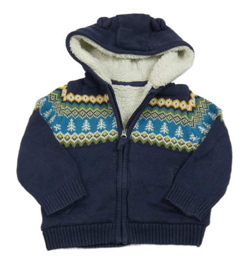 Tmavomodrý prepínaci zateplený sveter so vzorom a kapucňou Mothercare