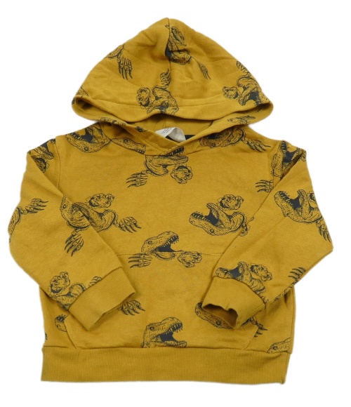 Okrová mikina s dinosaurami a vreckom a kapucňou H&M