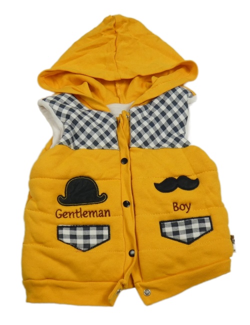 Žltá zateplená tepláková vesta s nápismi a kapucňou