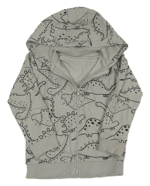 Světlešedá propínací mkina s dinosaurami a kapucňou George