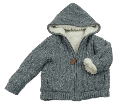 Tmavomodrý melírovaný zateplený prepínaci sveter s kapucňou nutmeg