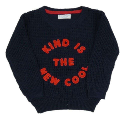 Tmavomodrý rebrovaný sveter s nápismi PRIMARK