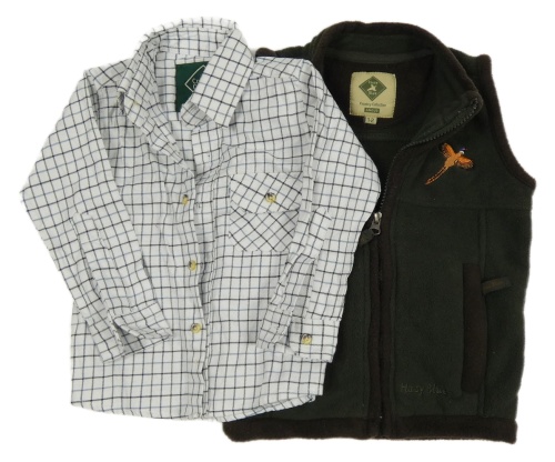 2 set - khaki fleecová prepínaci vesta + bielo-modro-čierna kockovaná košeľa