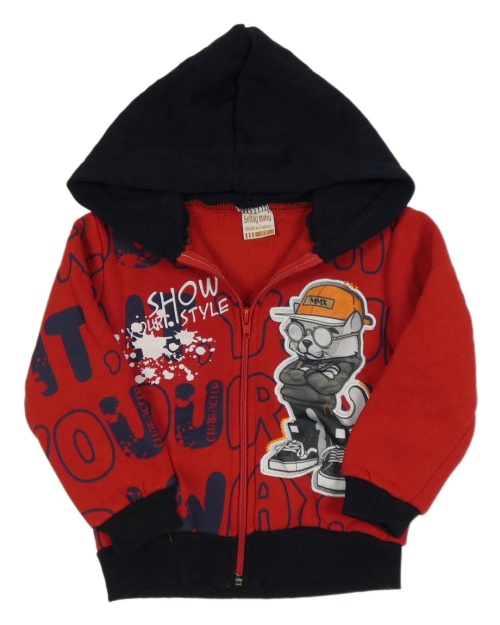 Červeno-tmavomodrá prepínaci mikina s mačkou