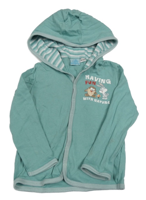 Zelená ľahká prepínaci mikina s Bugs Bunnym s Tazem a kapucňou
