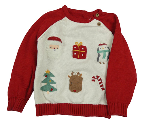Smetanovo-červený sveter s vánočními obrázky Nutmeg