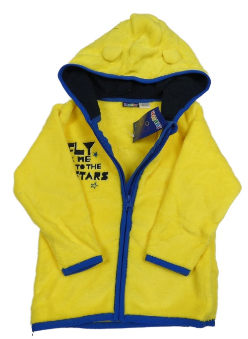 Nové - Žltá chlpatá prepínaci mikina s modrými lemy a kapucňou Lupilu