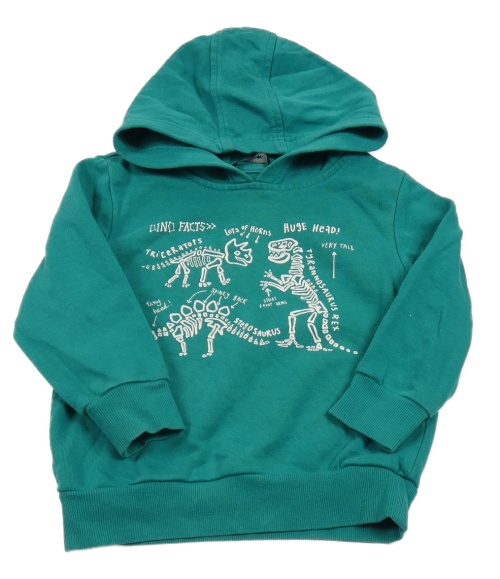 Tmavozelená mikina s kostrami dinosaurů a kapucňou George