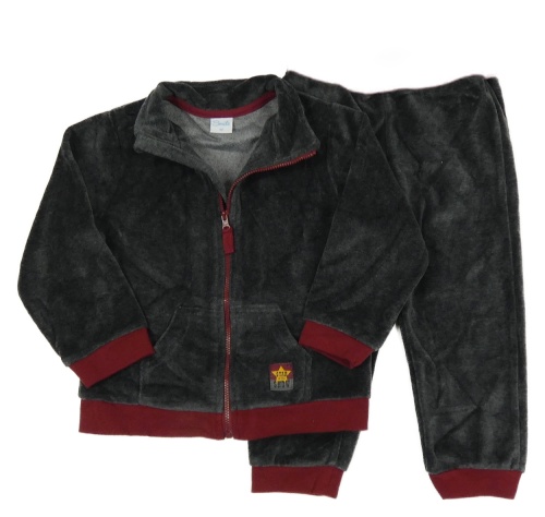 2Set - Tmavošedo-vínová zamatová prepínaci mikina s nášivkou + tepláky Smile