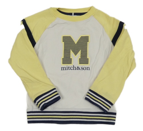 Bielo-žlto-modrá mikina s písmenem a logom Mitch&Son