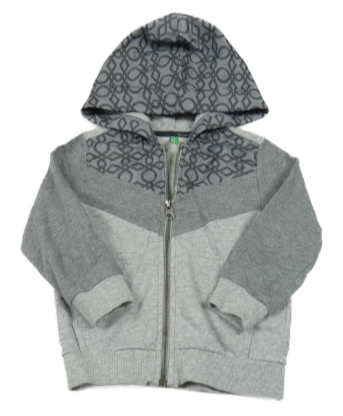 Sivá melírovaná prepínaci mikina so vzoram a šušťákovou kapucňou Benetton