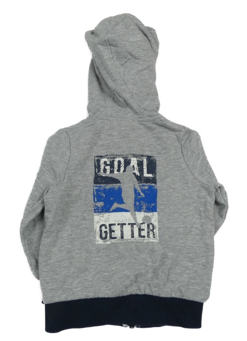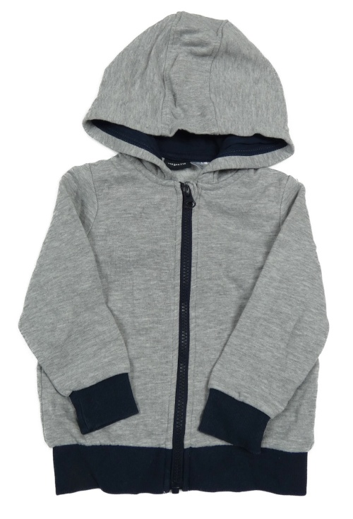 Sivo-tmavomodrá prepínaci mikina s nápisom a kapucňou Lupilu