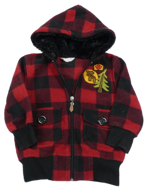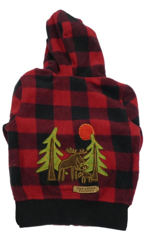 Čierno-červená kockovaná fleecová prepínaci mikina s losmi a kapucňou